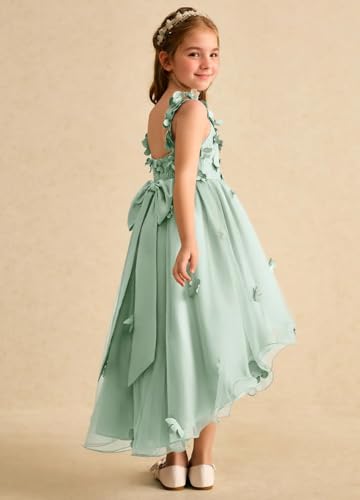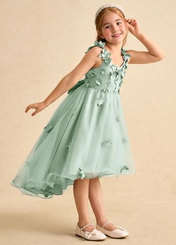 More information about Girls 3D Lace Flowers Applique Flower Girl Dresses for Weeding Tulle Backless First Communion Dress with Bow Knot