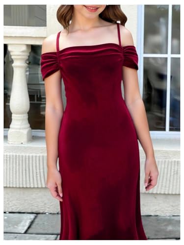 HOT ! Floerns Girl's Cold Shoulder Velvet Bodycon Dresses Ruched Birthday Fishtail Long Dress