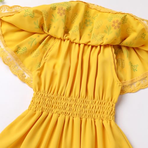 Kids Girls Mexican Dress Off-Shoulder Sunflower Print Drape Traditional Ethnic Wear Birthday Dresses 6