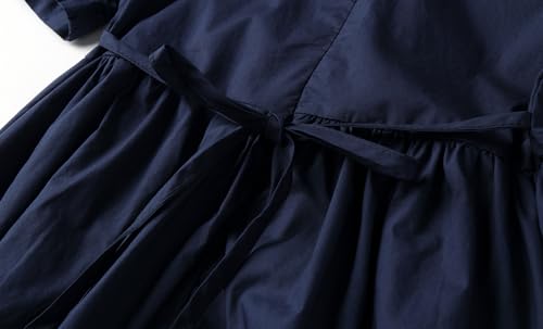 LittleSpring Girls Short Sleeve Uniform Nautical Dress with Collar Navy Sleek 4