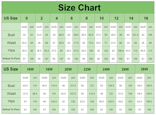 • Custom-Made Service:We provide free customization services. If you need customized sizes, please provide us with your bust, waist, hip, and hollow to floor measurements.