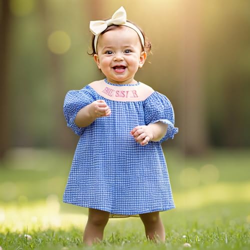 HOT ! Toddler Girls Smocked Big Sister Dress Short Sleeve Plaid Letter Embroidery Bubble A-line Pink Bishop Dresses