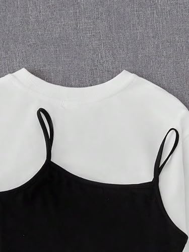 COZYEASE Girls' 2 Piece Outfits Drop Shoulder Long Sleeve Crop Top Pullover and Graphic Cami Bodycon Dress 5