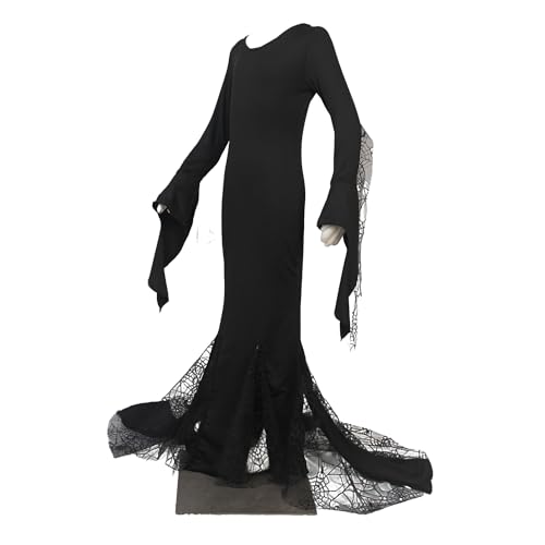 Vintage Gothic Mermaid Dress for Girls Witch Style Long Bell Sleeves with Lace Trim Floor Length Gowns 4