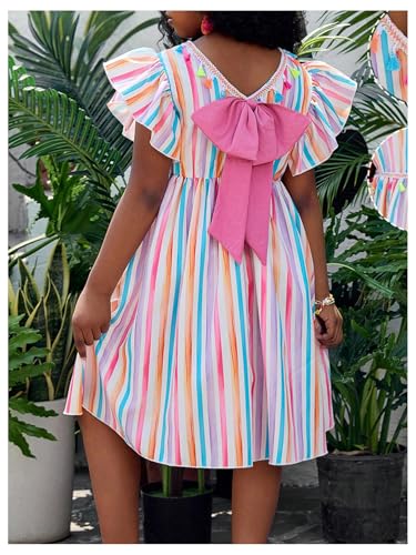 More information about Girl's Striped Cute Dress Bowknot Crew Neck Ruffle Short Sleeve Summer A Line Flowy Dresses