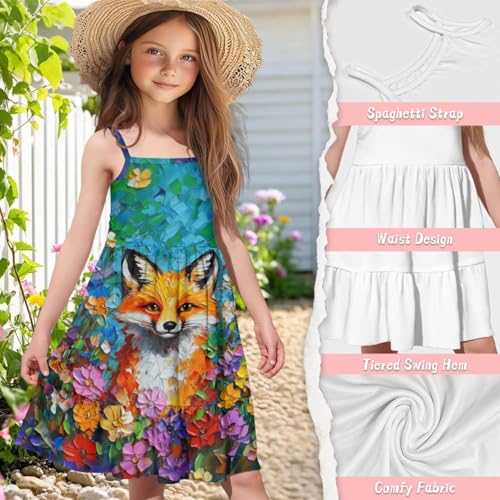 Girls Dresses Size 3-14 Kawaii Spaghetti Strap Sundress Knee Long Summer Dress for Beach 6