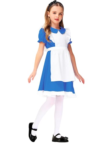 Deerose Kids Blue White Dresses with White Apron Halloween Princess Dress 3-14 Years 4