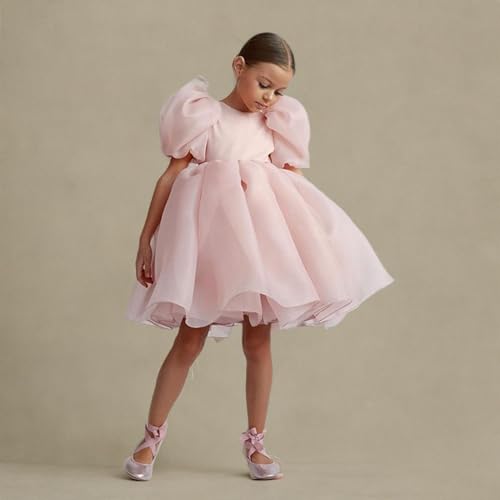 Kids Girls Puff Sleeve Dress Party Princess Dress 2~8 Years Short Sleeve Summer Backless Puffy Dresses Pageant 4