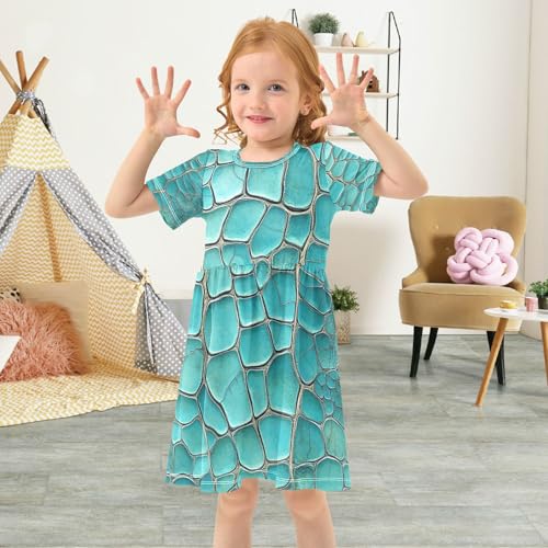 Girls Summer Dress Short Sleeve A Line Crocodile Alligator Casual Dresses for Kids 2-8 Years 6