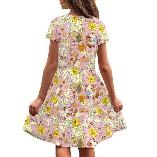 Kids Short Sleeve Dress for Girls 2-14Y Summer Crewneck Midi Dresses Casual Swing Dress with Pockets 5