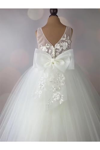 • 🍭【EXQUISITE DESIGN】Flower Girls Dress Features a Bow Pearls Buckle and V-Back Hollowed Out Design, Soft and Comfortable Satin Fabric, the Puffy Tulle makes the Hemline Look Large and more Like a Princess Pageant Dress. The Skirt is Scattered with Lace Appliques , Which Looks Elegant and Sophisticated and Makes the Dress Full of Design and Fashion Sense.
