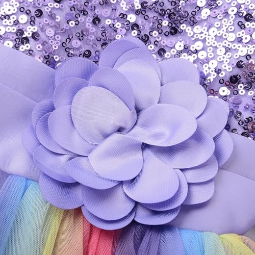 • [Sparking Light-Up Dress] The dress features a sparkly sequin bodice, with a rainbow tulle skirt that flows beautifully. The 3D flower on the waist adds extra charm for a picture-perfect princess look