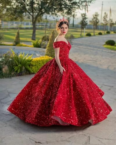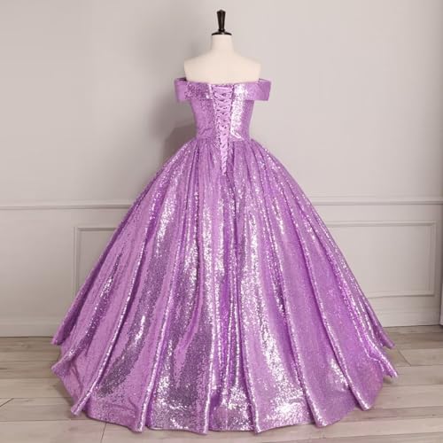 • Sparkly Sequin Quinceanera Dresses Off Shoulder Puffy Sweet 16 Dresses Long Princess Prom Dresses for Women A-Line Formal Wedding Ball Gowns Glitter Evening Party Dresses for Teens Sequin Formal Princess Birthday Party Gowns Vestidos De 15 Anos