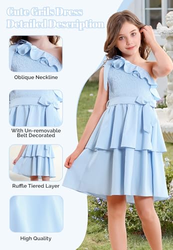 • 【Perfect Fit for girls】 Designed for ages 5-14, this one shoulder ruffle dress adapts to growing girls. The stretchy waist and detachable belt ensure a flexible, comfortable fit. Whether shopping for dresses for kids, teens, tween dresses, or flower girl dresses for wedding ceremonies, this dress delivers both style and comfort.