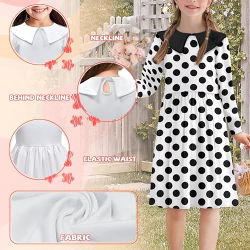 Girls Vintage Polka Dot Dress with Peter Pan Collar Loose Fit Long Sleeve Fall Winter Twirly Midi Dress 6