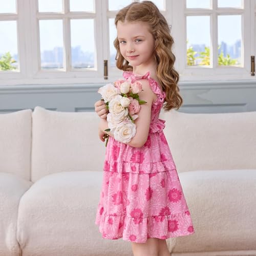 • Premium Material of Girls Pink Floral Dress: 100% Polyester. Soft, breathable, lightweight and comfy dress. Be friendly to your girl's skin. Nice dresses for girls. NO Scratch No Itches