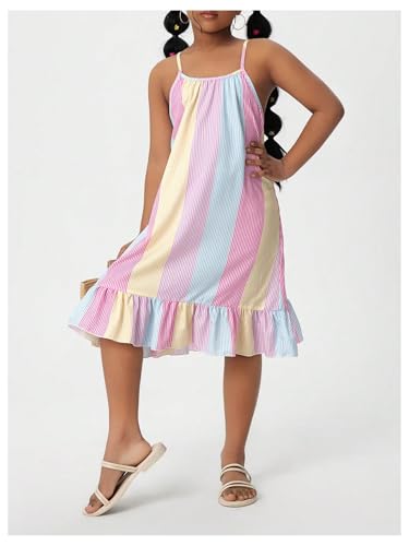 More information about Girl's Striped Color Block Ruffle Dresses Sleeveless Summer Cami Short Dress Flowy Sundress