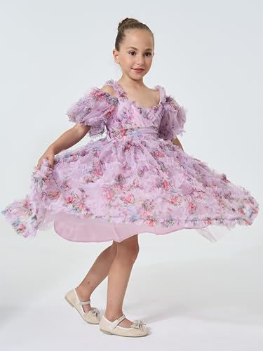 More information about 2Bunnies Girls' Tiered 3D Floral Ruffled Tulle Off Shoulder Puff Sleeve Sweetheart Neckline Dress
