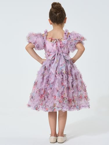 2Bunnies Girls' Tiered 3D Floral Ruffled Tulle Off Shoulder Puff Sleeve Sweetheart Neckline Dress 4