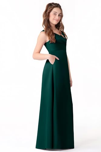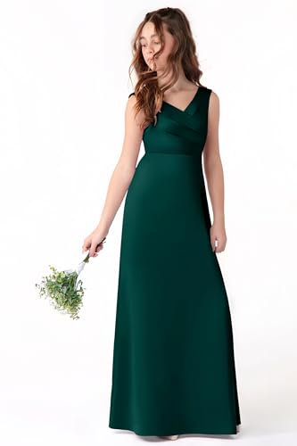Long Satin Wedding Flower Girl Dress Ruffles Junior Bridesmaid Dress for Teen V-Neck Girls Pageant Ball Gown 6