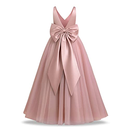 Girls Dress Formal Big Bowknot Backless Tulle Wedding Pageant Gown Princess Birthday Party Prom Ball Gown 5-14Y 6
