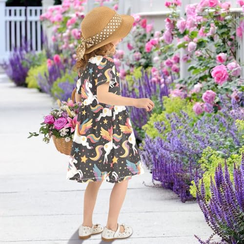 Cute Cartoon Unicorns Stars Black Girls Dress Crewneck A Line Summer Sundress Summer Clothes for Toddler Girls 4