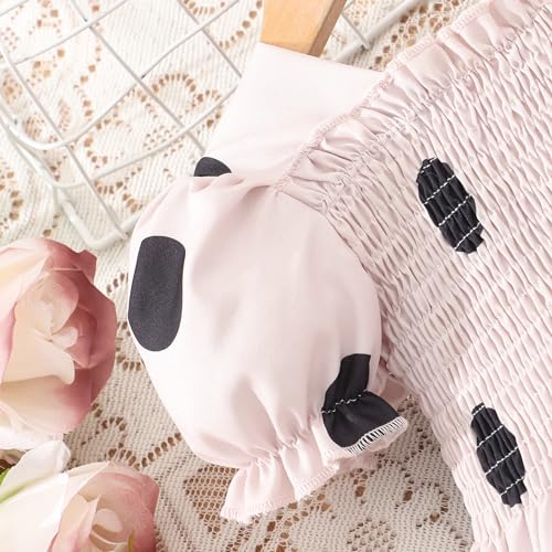 Little Girls Polka Dots Lantern Ruffle Sleeve Elastic High Waist Maxi A-line Pleated Summer Party School Dress 6