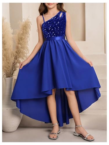HOT ! Floerns Girl's Sequin Dress One Shoulder Formal Pageant Prom High Low Hem A Line Long Dresses