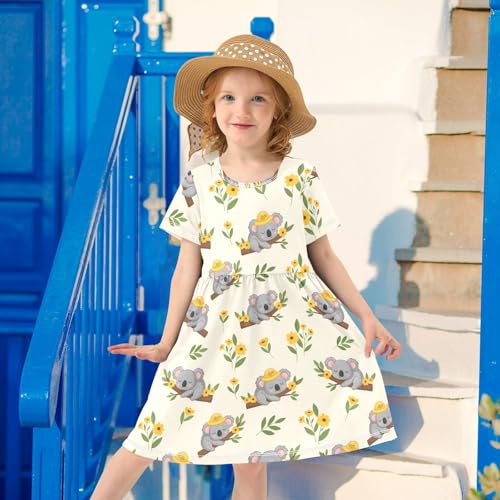Koala Yellow Flowers Girls Summer Dress Toddler Casual Dresses Girl Short Sleeve Dress for Girls,2T 7