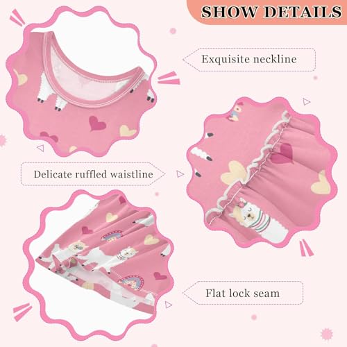 Girl Sleeveless Dress Summer Tank Play Dress Outfit Rainbow Heart Happy Alpaca Pink 2T-8T 4