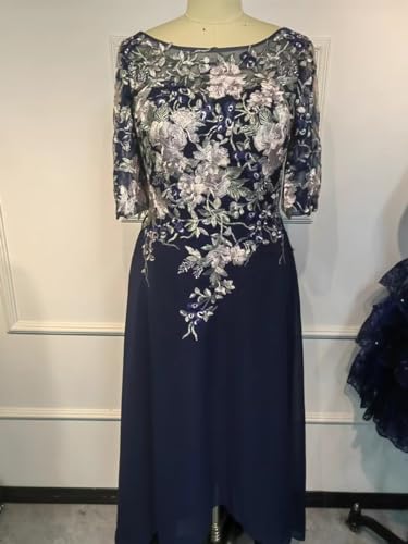 More information about Tea Length Mother of The Bride Dresses Embroidery Chiffon Appliques Half Sleeves Formal Evening Dress A Line