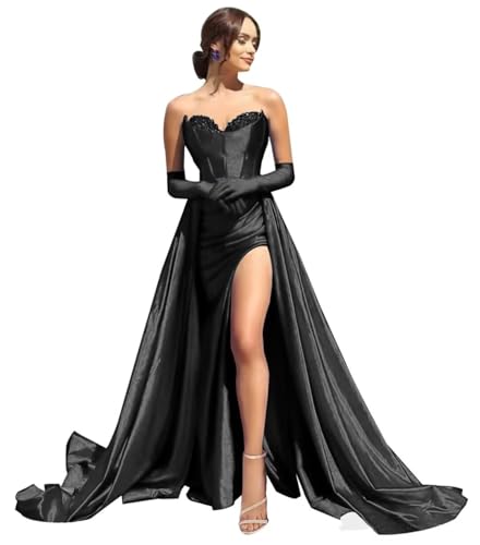 More information about Off The Shoulder Satin Prom Dresses Long Mermaid Evening Gown with Slit Beaded Formal Gown with Train