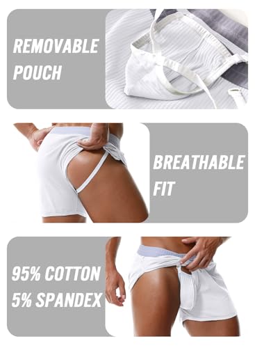 MIZOK Mens Split Side Underwear Sexy Cotton Boxer Shorts with Jockstrap&Removable Pouch 5