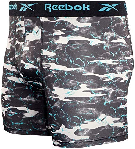 Reebok Men's Boxer Briefs – 4 Pack Quick Dry Moisture Wicking Performance Mens Underwear - Stretchy Soft Boxers for Men S-XL, Size X-Large, Black/Print/Magnet 6