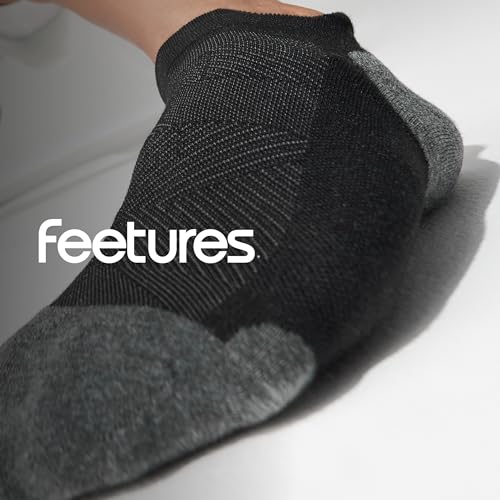 HOT ! Feetures Elite Max Cushion No Show Tab Ankle Socks - Sport Sock with Targeted Compression - New Black, L (6 Pair)