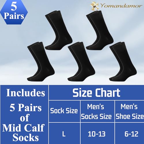 Yomandamor Men's 5 Pack Mid-Calf Dress Socks,Size 10-13 5