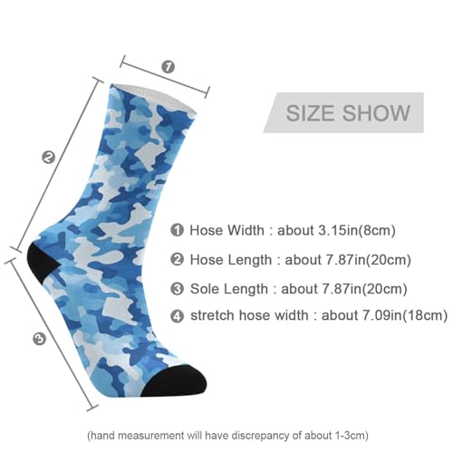 Mens Crew Socks Crew Camouflage in Blue Socks for Men Hiking Sports Running 7