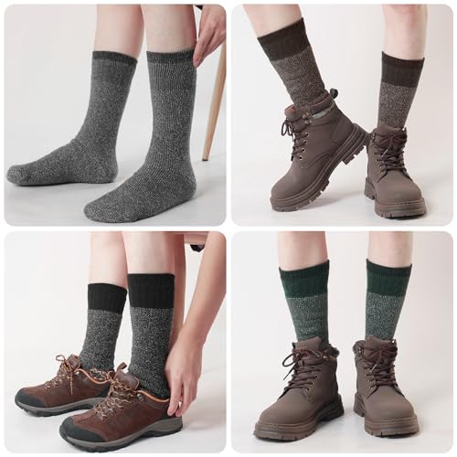 Toes Home Thermal Hiking Socks for Men Warm Thick Crew Socks Winter Cold Weather Wool Tall Calf 4 Pack Outdoor Boot Socks Gifts Christmas Stocking Stuffers 6
