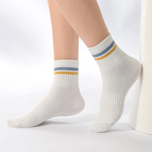 More information about 6 Pack Crew Socks for Women Men - Fashionable Strip Ribbed Cuffs Soft Luxe Wide Heel Smooth Flat Seam Toe Arch Support