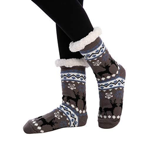 More information about JOYIN 4 PCS Christmas Fuzzy Slipper Socks, Soft Crew Socks Deer Patterns for Winter Christmas, Holiday or Birthday Gift