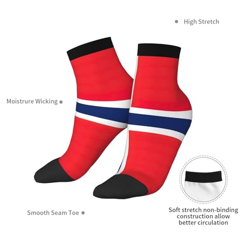 • All-Day Comfort: Norwegian flag print Men's Cushion Running Socks are designed with a flexible top that stays in place, ensuring no discomfort from slipping. The socks are breathable and provide the right balance of cushioning for long-lasting comfort in every season.