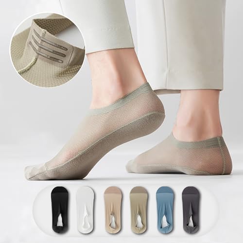 Men's Ice Silk No-Show Socks, Low Cut Invisible Breathable Non-Slip Liner Socks, High-End Ice Silk Mesh Socks 6