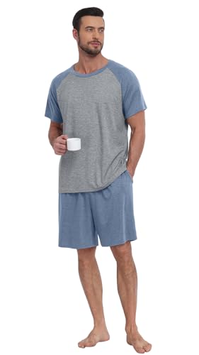 More information about Mens Pajama Set Summer Pjs Sleepwear Lightweight Short Sleeve Pjs Soft Comfy Sleep Set With Pocket