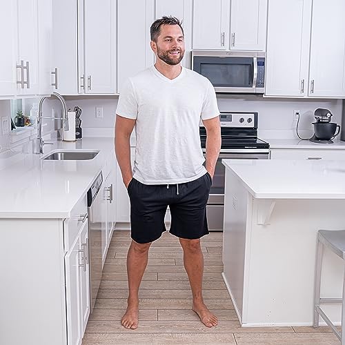 • Convenient and practical design: Featuring an elastic waistband and durable black drawstring for a comfortable fit, our pajama shorts also have two side pockets for storage. Designed without a fly for added ease and comfort.