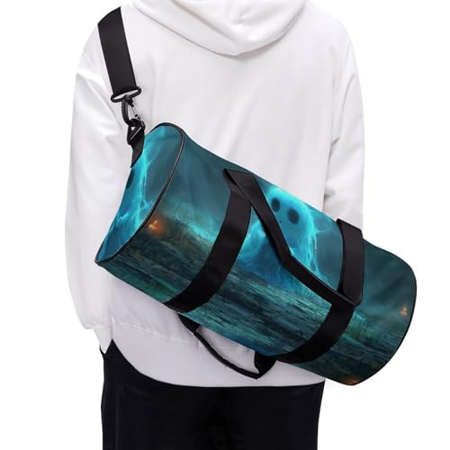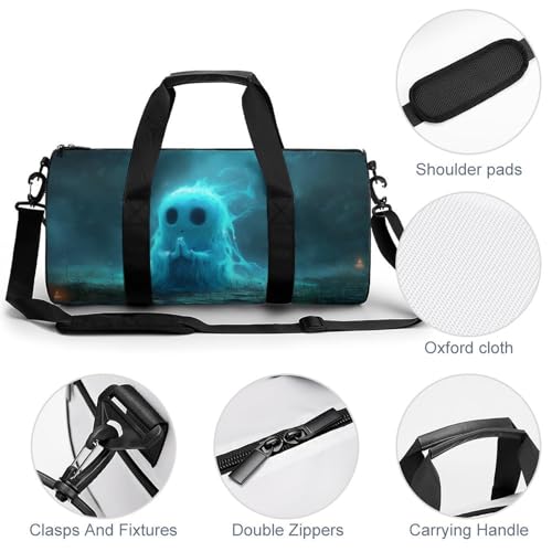 HOT ! Funny Halloween Ghost Travel Gym Bag for Women Men Ghost Praying to The Sky Gothic Dark Academia Creepy Spooky Cylindrical Duffle Bag Sport Workout Bag with Shoulder Strap