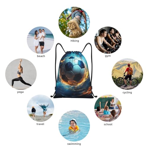 Drawstring Bag Space Fire Water Soccer Drawstring Backpack Gym Sport Sack String Bag Waterproof Swimming Bag Beach Sackpack,Large Yoga Bag For Men Women 4
