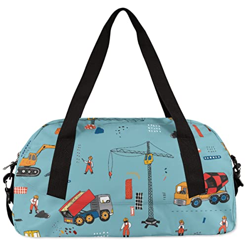 Yellow Excavator Truck Kids Duffle Bag for Boys Girls Dance Bag,Funny Big Car Sport Gym Bags Overnight Travel Bags Teen Kids Weekender Bag for School Practice Gymnastic Ballet 5