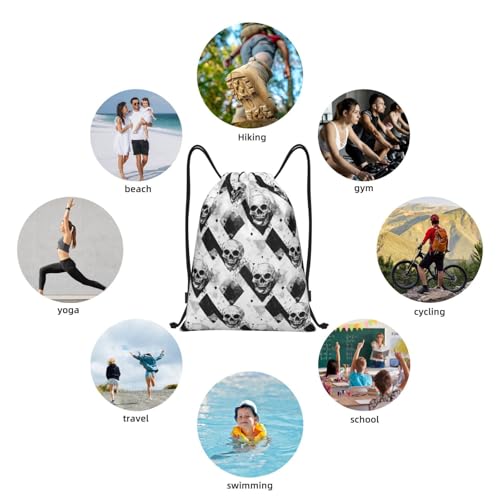 • Multi-Use Versatility: Ideal for travel, day trips, or daily errands, this Retro White Black Skull Print string bag backpack keeps things light and hands-free. Great as a secondary gym bag, drawstring bags for teams, or a compact string backpack