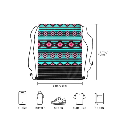 HOT ! jejeloiu Southwestern Gym String Bag Geometric Drawstring Backpack Tribal Sports Drawstring Sackpack 13"x15.7" Native American Design Blue Pink Waterproof Drawstring Bags
