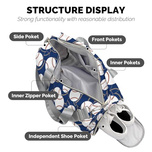 • Large Capacity and Multi Compartment: 1 main compartment and 3 side pockets. 1 separate shoe compartment with ventilation holes, 2 interior open pockets, 1 trolley sleeve pocket and 1 interior zip pocket, enough space and multiple divided pockets allow you to store your different items in an organized manner, making them easy to access and keep tidy, The adjustable shoulder strap provide a customized and comfortable fit, meet all your daily needs Baseball bags!